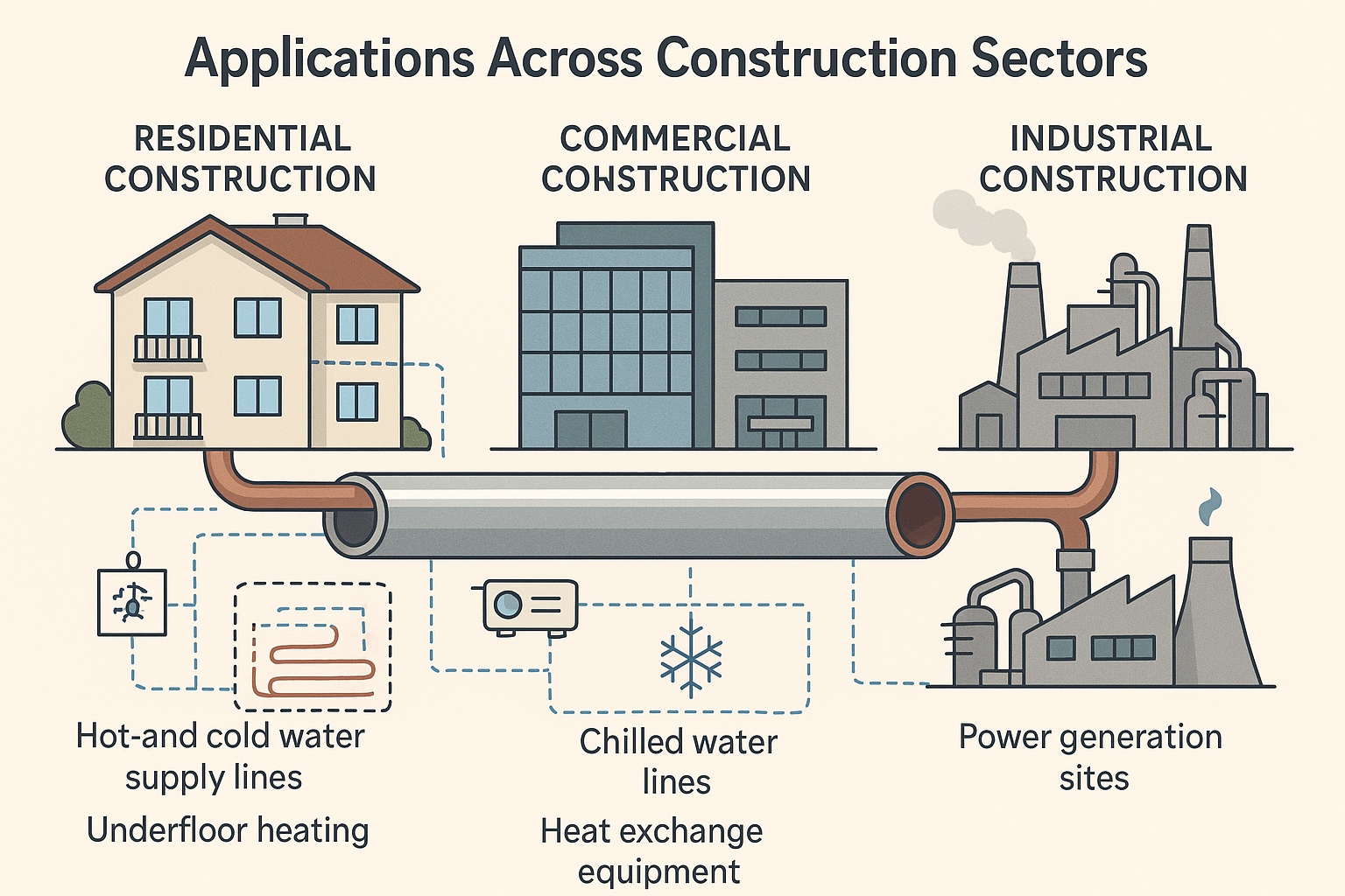 Универсальность серебро copper tubes делает их пригодными для широкого спектра строительные приложения . В жилищное строительство , они обычно используются в линии подачи горячей и холодной воды , системы отопления и сети теплого пола . Их долговечность помогает снизить риск протечек и отказов, связанных с коррозией, что особенно важно в многоквартирные жилые дома .