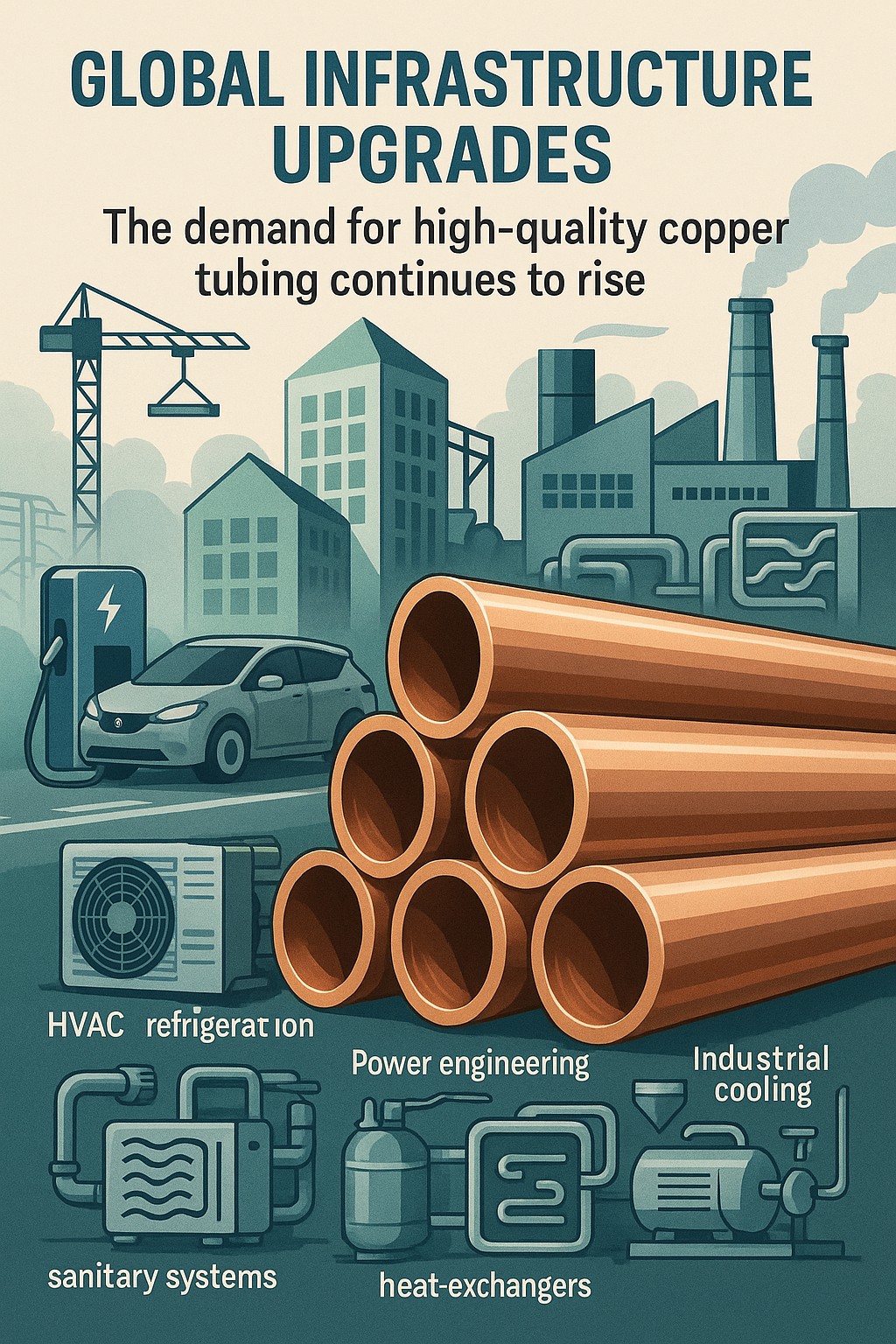 Поскольку глобальная инфраструктура претерпевает масштабные обновления — от замены систем отопления, вентиляции и кондиционирования до энергоэффективного строительства зданий, внедрения тепловых насосов, промышленного охлаждения и ускоряющейся электрификации транспорта — спрос на высококачественные медные трубы продолжает расти. В системах отопления, вентиляции и кондиционирования, холодильном оборудовании, энергетике, теплообменниках и санитарно-технических системах медные трубы остаются одним из самых надежных материалов благодаря своим превосходным свойствам. теплопроводность , коррозионная стойкость , формуемость и 100% перерабатываемость .
