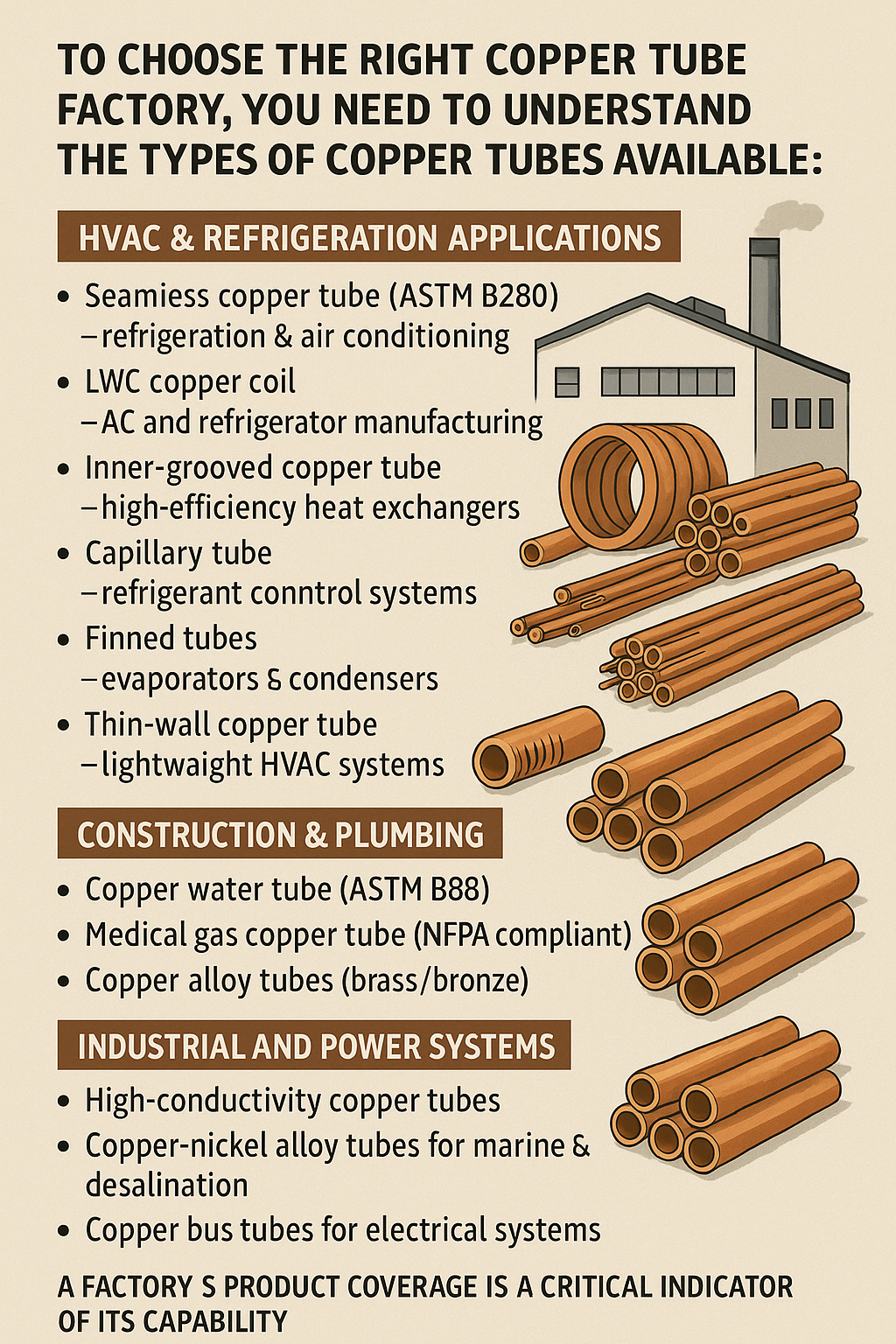 При выборе подходящего завода-поставщика/партнера среди многочисленных производителей медных труб рекомендуется ориентироваться на следующие параметры: