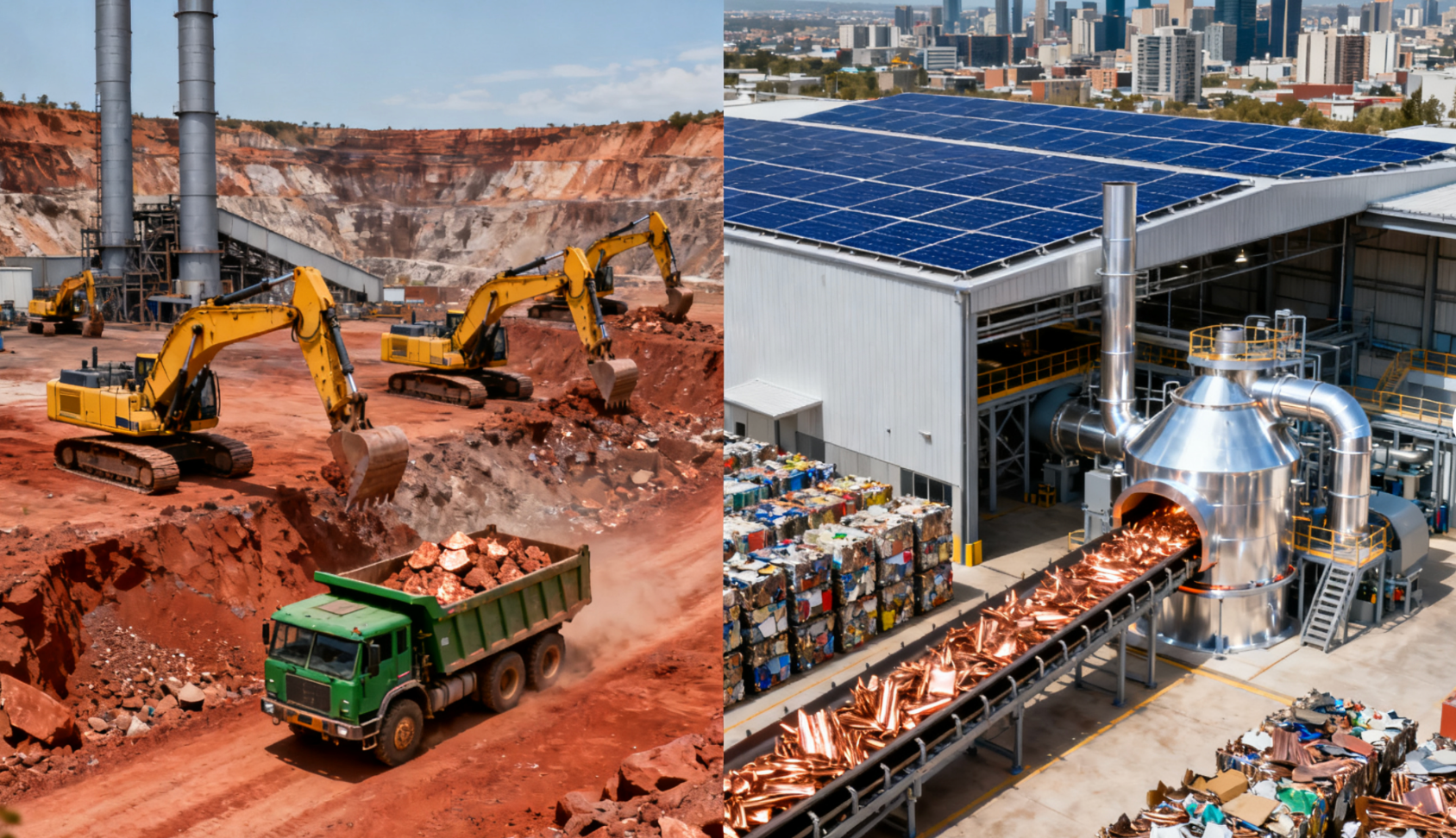 | Ресурсная база | Девственные материалы (Медная руда) | Переработанный контент (Городская шахта) |