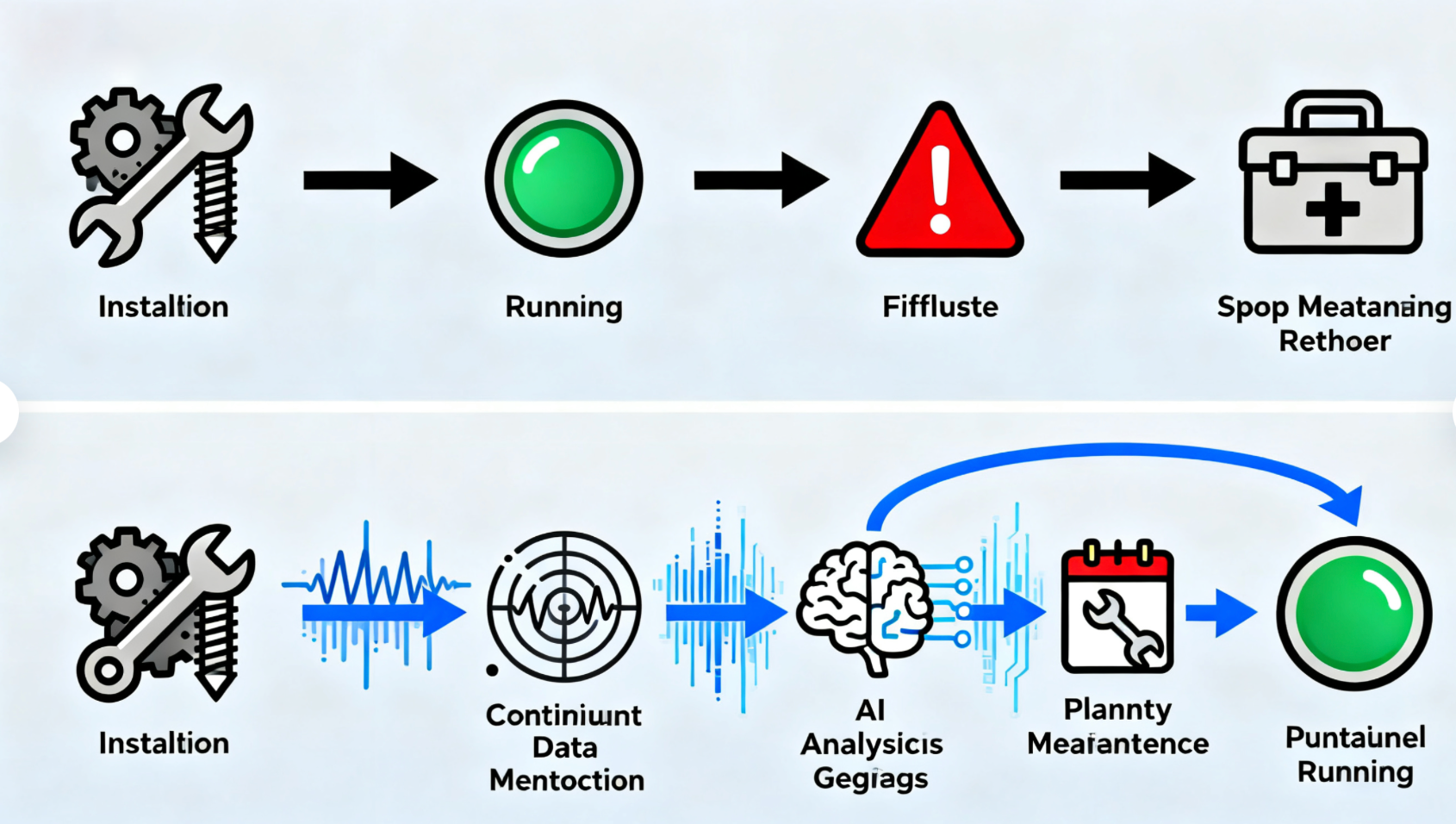 Подпись: Эволюция моделей технического обслуживания: от пассивного реагирования на сбои к упреждающему вмешательству с прогнозированием на основе данных, что значительно повышает надежность системы.
