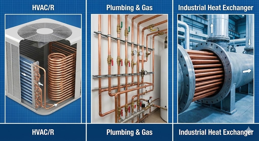 Медные трубы ТП2 — это «кровеносная система» современной инфраструктуры. Благодаря уникальному сочетанию коррозионной стойкости и термической эффективности они незаменимы в: